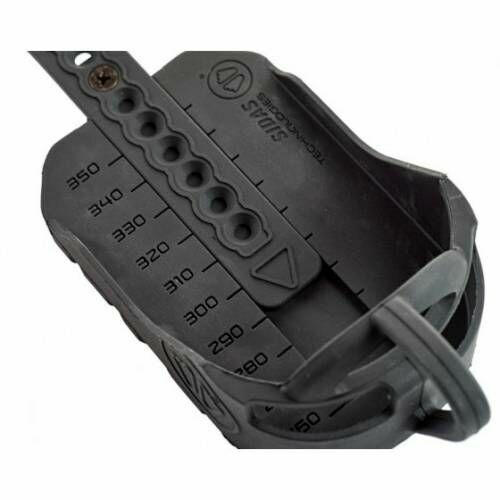 > Dopasuj trakcję buta narciarskiego do odpowiedniego rozmiaru (zaokrąglając w dół). Końcówka strzałki wskazuje wybrany rozmiar.